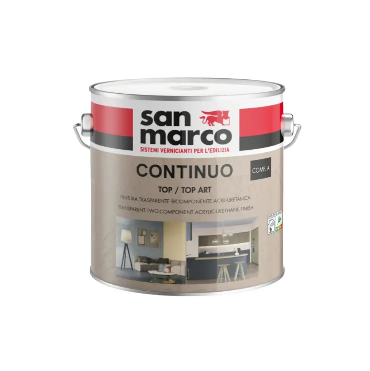 San Marco Continuo Top, daxili məkanlarda dekorativ döşəmə və divar sistemlərini qorumaq üçün nəzərdə tutulmuş, yüksək keyfiyyətli, iki komponentli akril-uretan əsaslı şəffaf bitirmə qatıdır (finitura). Bu məhsul həm estetik görünüşü tamamlayır, həm də səthi xarici təsirlərdən maksimum dərəcədə qoruyur.