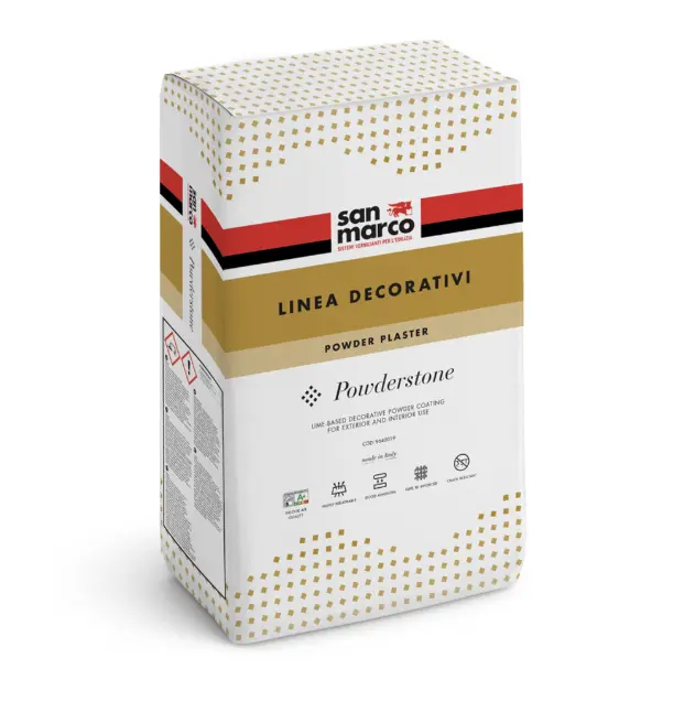 San Marco Powderstone, həm daxili, həm də xarici səthlər üçün nəzərdə tutulmuş, yüksək keyfiyyətli əhəng əsaslı dekorativ toz örtükdür. Bu məhsul divarlarda təbii daş teksturasını və qədim suvaq effektlərini yaratmaq üçün mükəmməl seçimdir. Quru toz halında olan bu material su ilə qarışdırılaraq tətbiq edilir və səthə estetik dərinlik qazandırır.